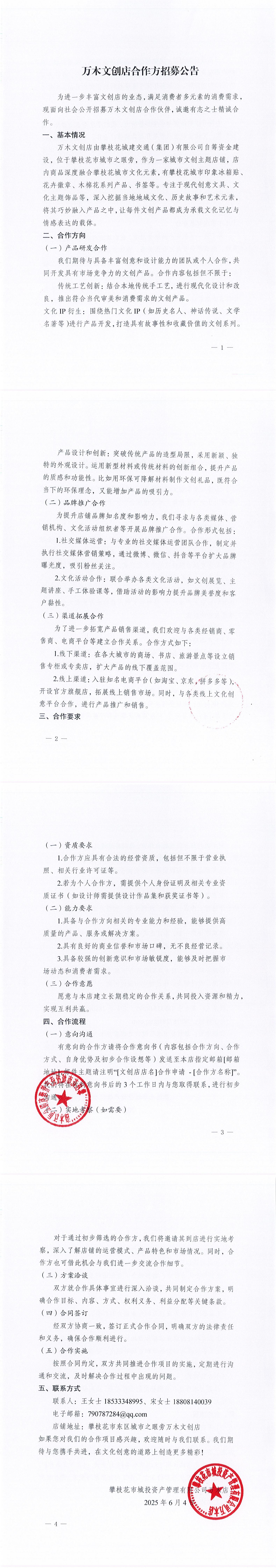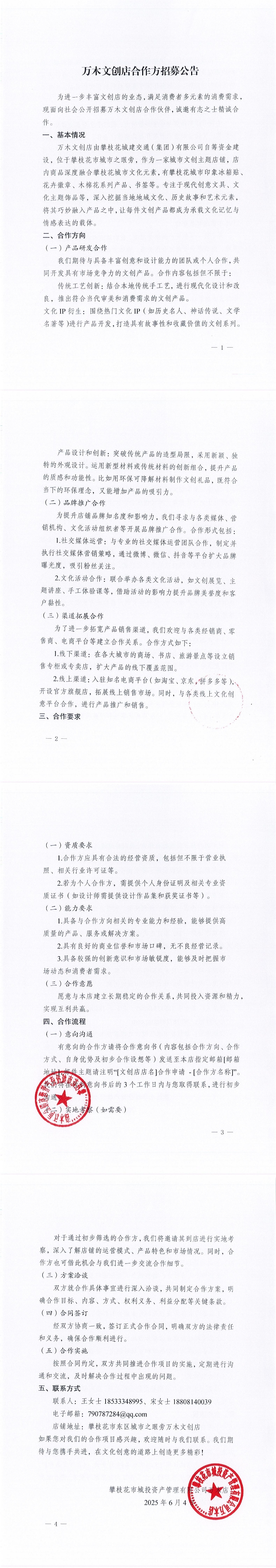 攀枝花市城投資產(chǎn)管理有限公司萬木店合作方招募公告